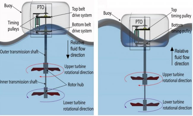 «Всегда поддерживая синхронизацию с движением волн, мы можем максимизировать количество получаемой энергии, — рассказывает ведущий научный сотрудник профессор Сюй Ван. — Это вместе с применением пары наших уникальных турбинных колес, вращающихся разнонаправленно, позволяет прототипу демонстрировать вдвое большую выходную мощность, получаемую при помощи океанских волн, чем с другие экспериментальные точечные абсорберы».
