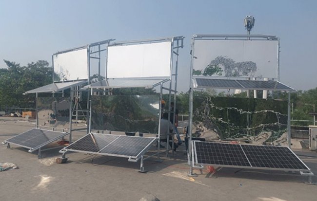 Исследователи из Индийского технологического института Дели (IIT Delhi) разработали устройства, которые они назвали «солнечными башнями», и которые генерируют на 20-30% больше энергии, занимая при этом всего 50-60% места в сравнении с традиционными решениями. Эти системы являются портативными: их легко можно погрузить на транспортное средство и доставить куда угодно для выработки электроэнергии. Использование зеркал рядом с солнечными панелями перенаправляет свет на фотоэлементы, максимизируя выработку солнечной энергии.