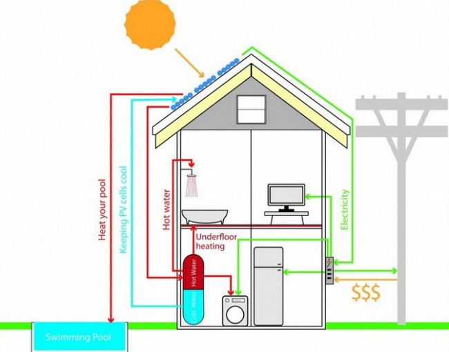 - Солнечная фотоэлектрическая и солнечная тепловая энергия в одном устройстве.