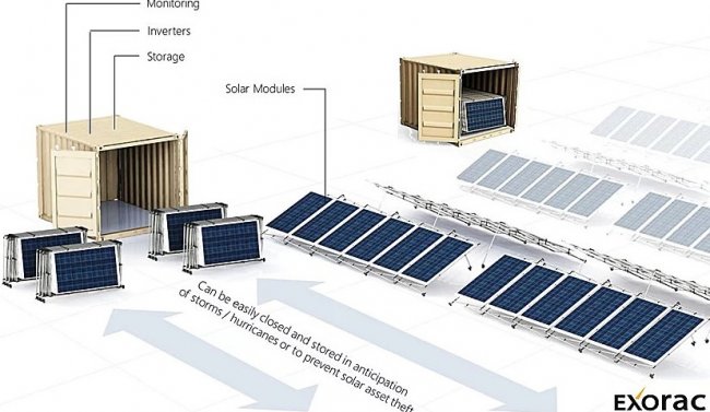 PWRstation намерена выпустить и более крупные решения на базе EXOrac Tryptic. Сейчас компания работает над созданием коммерческого продукта, который будет соответствовать размерам 40-футового контейнера и включать 100 солнечных установок по 3 кВт каждая, их можно будет собирать и раскладывать менее чем за полчаса.