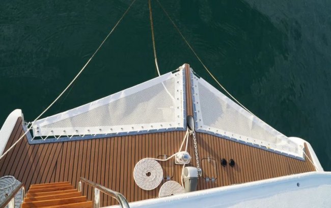 Всю энергию катамаран Aquanima вырабатывает из солнечных лучей, а на ночь запасает ее в аккумуляторах. Солнечную крышу площадью 56 км. м можно использовать как вторую палубу: загорать на ней, устраивать вечеринки и нырять с нее в воду.