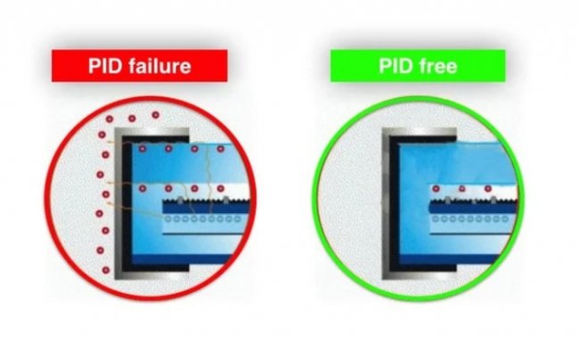 PID, как следует из определения, возникает, когда потенциал напряжения солнечных модулей и ток утечки определяют подвижность ионов внутри устройства между полупроводниковым материалом и другими элементами модуля (например, стеклом, креплением и рамой). Ионная подвижность (ионная миграция) ускоряется с увеличением влажности, температуры и потенциала напряжения. Воздействию PID подвергаются все солнечные панели – PN-соединения элементов разрушаются, что делает их менее производительными, менее эффективными.