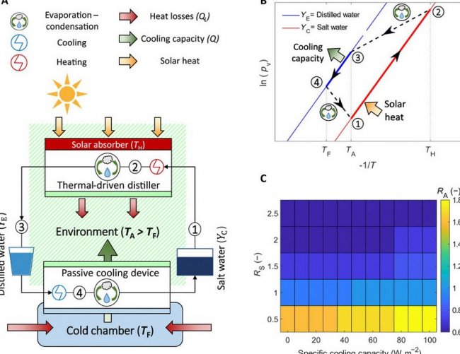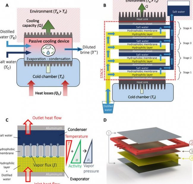 Специалисты из Национального института метрологии и Политехнического университета города Турина представили новое устройство, которое способно создавать запас холода без энергопотребления от сети. Как и большинство обычных устройств, новая технология использует для охлаждения испарение жидкости, но в этом процессе задействованы только вода и обычная соль вместо химических соединений, способных нанести вред окружающей среде.