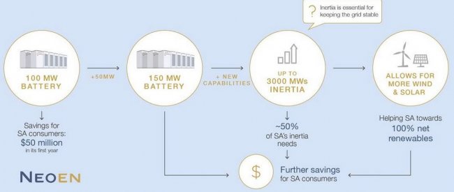 Tesla, Neoen и правительство Южной Австралии планируют увеличить хранилище, добавив к нему дополнительные 64,5 МВт*ч емкости и 50 МВт мощности. Обновление также будет включать новый рабочий режим от Tesla – Virtual Machine Mode, который позволит системе обеспечить стабильность в условиях колебаний спроса и предложения на электроэнергию.