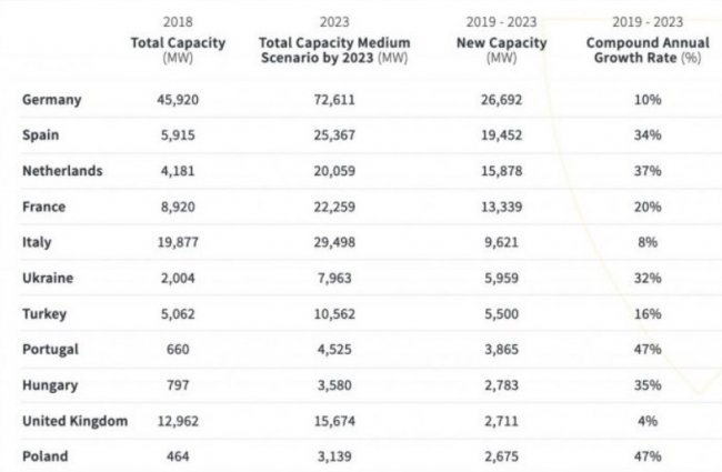 И эта тенденция не замедляется: в 2019 году в 28 европейских странах ожидаемый прирост солнечных мощностей составляет 81% – это почти двухкратный скачок с 11,3 ГВт, установленных в 2018 году до 20,4 ГВт в 2019 году. Стоит отметить, что Украина является одним из лидеров по темпам роста в этом секторе.