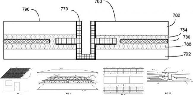 Модуль включает как минимум две фотовольтаические панели и расположенную между ними прокладку, которая обеспечивает полужёсткое соединение. В заявке на патент компания пишет, что может производить и устанавливать солнечную черепицу блоками: