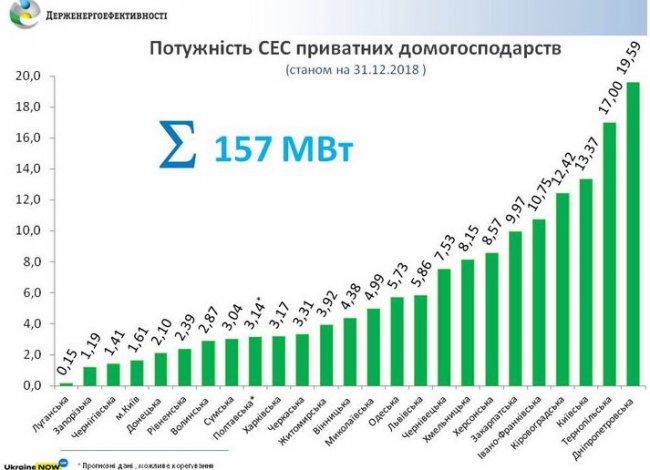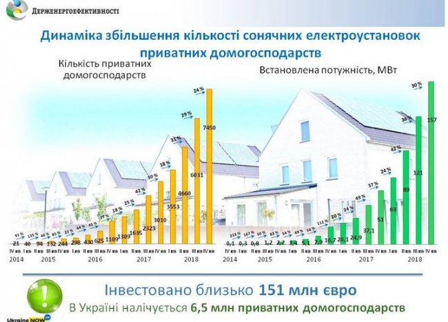 Согласно последней статистике агентства Госэнергоэффективности по состоянию на конец 2018-го года около 7,5 тыс. украинских домохозяйств установили солнечные электростанции (СЭС) суммарной мощностью почти 160 МВт.