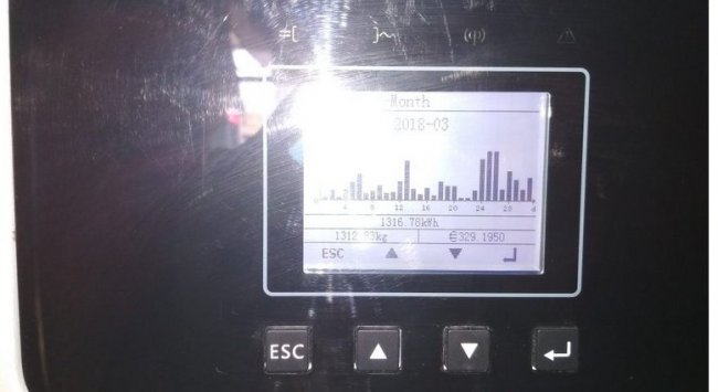 Станция генерирует энергию в любое время года — и летом, и зимой. Летом, естественно больше. Максимально она может генерировать 4000 кВт в месяц — это примерно 15 000 — 20 000 грн из расчета 18 евроцентов за киловат (такова цена по зеленому тарифу, которую утвердила Национальная комиссия, осуществляющая государственное регулирование в сферах энергетики и коммунальных услуг на 2017-2019 года). Деньги выплачивают в гривнах по текущему курсу — раз в месяц. На первый квартал 2018 года — это 5 грн 86 копеек. Из этой суммы высчитываются налоги, после чего на руки владелец станции получает по 4 грн 70 копеек за киловатт.