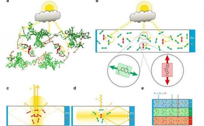 Идея гелиоконцентраторов – собирающих свет на больших площадях и перенаправляющих его на маленькие – не нова, однако работающие сегодня установки имеют ряд ограничений, например, они не могут полноценно функционировать при затенении, а использовать их можно только при прямом солнечном излучении, что, зачастую, требует применения трекеров. Тем не менее, сама природа подсказывает, что существуют коллекторы солнечной энергии, легко обходящие такое ограничение: в живых организмах, использующих фотосинтез, сотни хаотично ориентированных пигментов абсорбируют фотоны даже из непрямого солнечного света, направляя их в фотосинтетические реакционные центры почти без потерь.