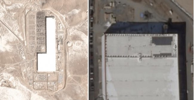 Но в течении года с момента выхода этого объявления не было никаких признаков возведения солнечной электростанции на заводе Tesla. До сегодняшнего дня: последние спутниковые снимки строительной площадки Gigafactory 1 показывают, что солнечные начали устанавливать на северной стороне сооружения (изображение получено через Building Tesla):
