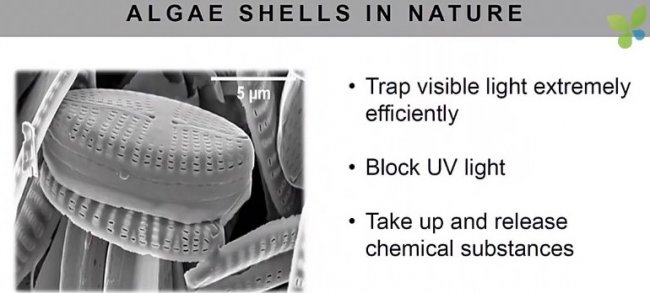 В 2017 году стартап Swedish Algae Factory, состоящий из 4 сотрудников и действующий на базе Гетеборгского университета, получил финансовую поддержку от Шведского энергетического агентства. Помимо использования в солнечной энергетике диатомовые оболочки могут применяться для создания экологически чистого солнцезащитного крема, органических абсорбентов для ухода за кожей, удобрений. Водоросли могут быть использованы и для очищения сточных вод рыбьих ферм от азота и фосфора.
