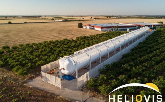 В июне компания запустила «первое промышленное применение этой технологии» с использованием коммерчески доступных пластиковых пленок. HELIOVIS открыла пилотный проект в Испании, где 1 мегаваттная 200-метровая система шириной 9 метров поставила мировой рекорд по использованию однородного зеркала площадью 1600 м2. Новая гелиосистема также включает элементы теплового хранения энергии, которые обеспечивают выделение тепла после наступления темноты, поставляя его в грибные теплицы. Ожидается, что HELIOtube сэкономит фермерам десятки тысяч литров дизельного топлива.