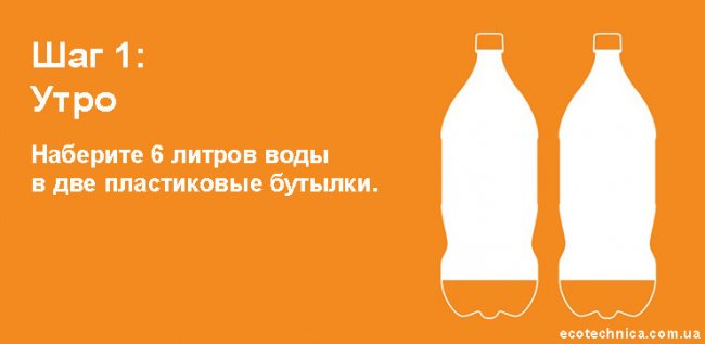 Шаг 1: Утро. Наберите 6 литров воды в две пластиковые бутылки.
