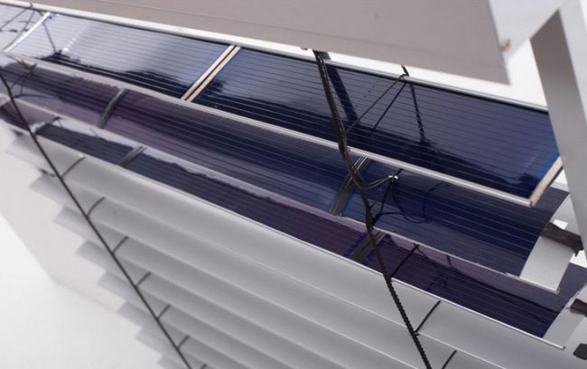 Украинский предприниматель Евгений Эрик предлагает достаточно оригинальное и относительно недорогое решение этого вопроса: энергогенерирующие солнечные жалюзи. Стандартное окно, оборудованное таким необычным устройством, сможет производить (при оптимальных условиях) до 100 кВт электричества в месяц. Стоимость таких фотоэлектрических жалюзи будет составлять примерно 300 долларов (с монтажом).