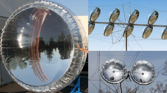 Инновационная технология «CPV» предлагает использовать в качестве солнечной батареи воздушные шары из пластиковой пленки с размерами около 3 метров в диаметре. «Надувные» солнечные концентраторы изготавливаются, в отличие от обычных панелей, из недорогих и доступных материалов и позволяют генерировать намного больше энергии.
