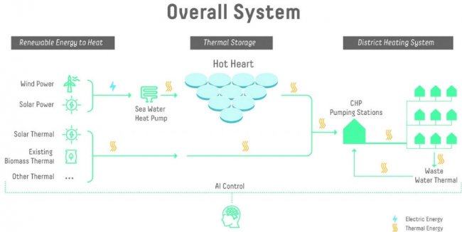 «Производство возобновляемой энергии становится дешевле, но ее хранение по-прежнему очень затратное. Наша идея состоит в том, чтобы с помощью гигантских тепловых батарей накапливать энергию, когда цены на нее низки или даже отрицательны, и использовать тепло, когда оно нужно для системы централизованного теплоснабжения, когда спрос на него высок. Такая система может применяться во многих прибрежным городах с климатом, как в Хельсинки.