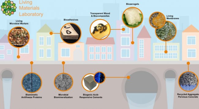 «Живая архитектура» перемещается из области научной фантастики в лабораторию, где ученые превращают клетки в микроскопические фабрики. В университете Колорадо в Боулдере Уилл Срубар (Wil Srubar) возглавляет Living Materials Laboratory, где вместе с коллегами в области биохимии, микробиологии, материаловедения и структурной инженерии используют наборы инструментов синтетической биологии для создания бактерий, продуцирующих полезные минералы и полимеры и превращающих их в живые строительные блоки, которые в один прекрасный день могут оживить и здания.