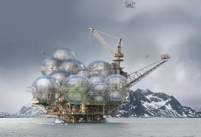 Архитекторы придумали новое устойчивое будущее огромным нефтяным платформам: жуткие плавучие заводы превращаются в экзотические обитаемые острова.