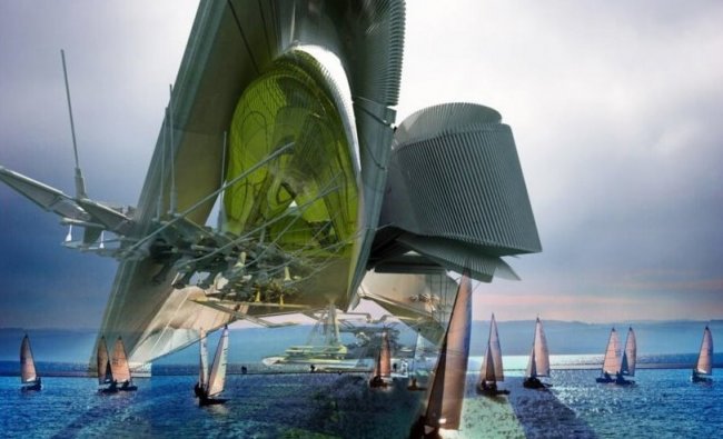 Турбины, которые расположатся вокруг основного ряда модулей, будут вращаться и преобразовывать энергию ветра и волн в электричество.