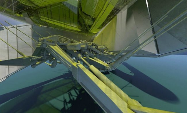Его архитектурный дизайн будет включать из ряд объемных, наполненных воздухом секций, выполненных из композитов. Такое устройство выбрано обеспечит легкий вес и плавучесть – в случае аварийной ситуации или сильного шторма завоздушенные модули легко отделятся от основания и не утонут в воде.