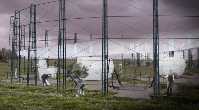 Концепция Cocoon BioFloss предусматривает создание кластерных домов из биопластикового волокна, полученного из растений: подсолнечника, картофеля или садовых деревьев. «Ингредиенты» для возведения зданий жители будут добывать на своих огордах, а на кухне превращать их в строительные материалы.