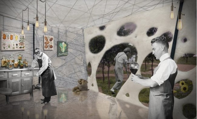 Кухня, по словам дизайнера, будет важнейшей частью такого дома – в ней будет располагаться лаборатория для производства биоволокон. Другие комнаты Вергопулу предложила расположить вокруг кухни, в том числе руководствуясь эргономикой естественного освещения.