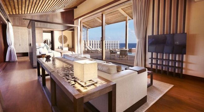 Номера с открытой планировкой рассчитаны на одного или двух гостей и помимо кроватей кинг-сайз в них есть большие гостиные, открытые бассейны, экологичная система кондиционирования и частные террасы с идеальным видом на море.