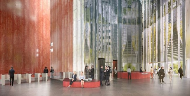 В новом «зеленом» небоскребе посетители получат доступ к нескольким общественным площадкам и парку, в то время как в его основании разместится City Room – большой холл высотой 19 метров. Нижние этажи сооружения займут 299 жилых апартаментов, а по соседству с ними расположатся кафе и магазины.