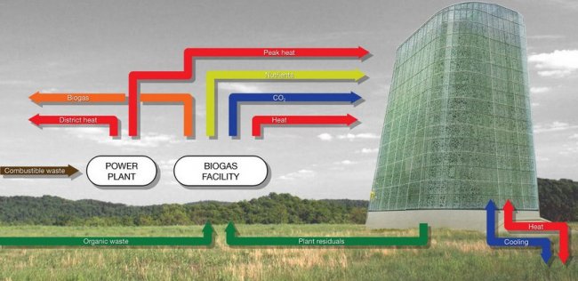 В зданиях будут находиться вертикальные фермы работающие на основе гидропоники. Первое такое сооружение строится специалистами Plantagon в шведском городе Линчепинг. Здание получило название The World Food Building и готово более чем на 50%. Внутри будут выращиваться растения при помощи гидропонных технологий – это значит без использования почвы, с применением водных питательных растворов. Для достижения наилучших результатов процесс выращивания будет полностью контролироваться роботизированным оборудованием. Специальный комплекс автоматически определит оптимальное для растений качество воздуха, необходимые температуру, количество воды и солнечного света.