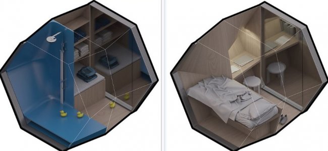 Поскольку оборудование, освещение, системы хранения и мебель, как и множество дополнительных систем и сенсоров, могут быть встроены в модуль, приют может быть адаптирован индивидуально для каждого жителя, удовлетворяя его базовые потребности.