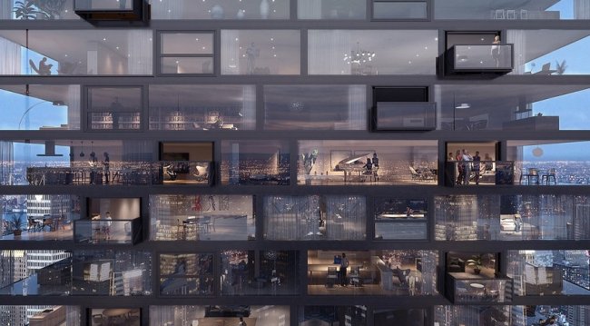 Одним из главных элементов футуристичной концепции стали дома будущего: дизайнеры представили модель небоскреба, сконструированную из инновационных материалов, часть из которых еще даже не производятся. Так, фасад гигантского здания высотой почти пять километров будет покрыт особым материалом, который будет поглощать смог и другие загрязнители из окружающего воздуха.