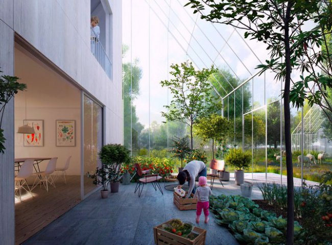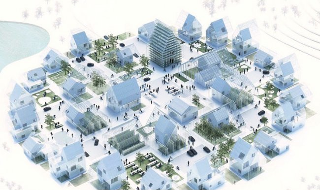 Так, каждое здание в ReGen Villages будет накрыто еще и стеклянным каркасом. Это улучшит теплоизоляцию домов, снизит расходы на отопление зимой и сделает возможным круглогодичное выращивание овощей и фруктов на домашних огородах. Сами жилые дома в поселении размещаются кругом, в центре которого находятся теплицы, станция зарядки электромобилей, небольшая ферма, пруд с рыбой, парковки, открытые огороды и общественные зоны.