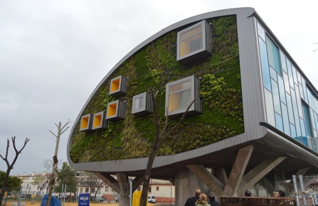 Европейские страны поэтапно принимают законы, в которых строителей обязывают после 2020 года сооружать здания только с нулевым потреблением энергии. Испанская архитектурная компания EZAR в сотрудничестве с архитектором Хуаном Бласкезом (Juan Blázquez) представили удивительное сочетание оригинального дизайна и энергоэффективности с помощью здания CSI-IDEA Building в Малаге (Испания), которое имеет зеленый фасад и производит больше энергии, чем потребляет.