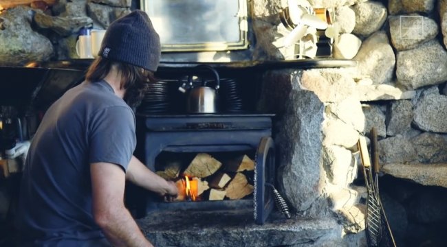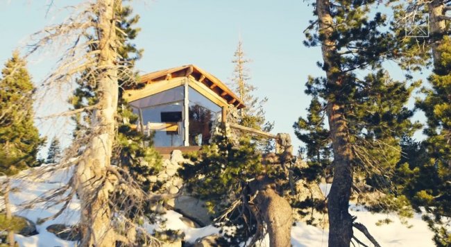 Строительным материалом стали дерево и камни, который профессиональный сноубордист нашел на собственном земельном участке. Вода поступает в жилище из двух горных ручьев, тепло обеспечивает камин на дровах, а необходимое электричество генерируют солнечные батареи.