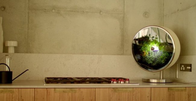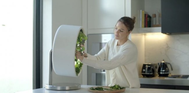 По форме Rotofarm напоминает гибрид огромной настольной лампы и безлопастного вентилятора Dyson, по сути же это полтора метра огородной грядки, упакованные в полусферическую чашу с лампой дневного света.