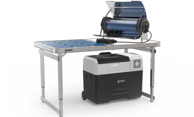 В отличие от представленного в 2014 году Solar Cool, новый портативный холодильник не имеет встроенных солнечных батарей. Вместо этого GoSun предлагает на выбор внешние устройства – гибкий трехпанельный солнечный модуль мощностью 30 Вт или 60-ваттный смарт-стол.
