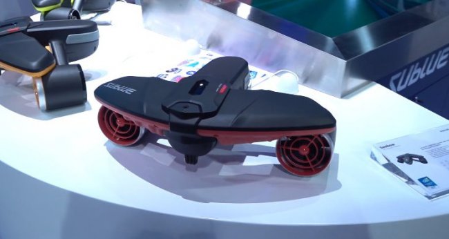 Прототип девайса был продемонстрирован на международной выставке потребительских технологий (CES 2019) в Лас-Вегасе. Суть в том, что аппарат тянет за собой аквалангиста или снорклера, который выбирает направление и управляет скоростью, держась за скутер руками. В этом случае скутер имеет три уровня скорости, и максимальный составляет 1,8 м/с. При этом погружение можно осуществлять на глубину до 40 м.