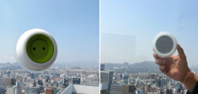Благодаря фотоэлектрическим модулям, расположенным вместо привычных креплений на обратной стороне розетки, ее можно «приклеить» к любому окну и получать энергию солнца.