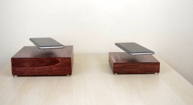 Так в чем же секрет парящего в воздухе и одновременно заряжающегося смартфона? На видео, представленном разработчиками компании AR Designs можно увидеть, что система состоит из двух основных компонентов: базы-передатчика заряда в деревянном обрамлении и стильного чехла с магнитом, выполняющего функции индукционного приемника.