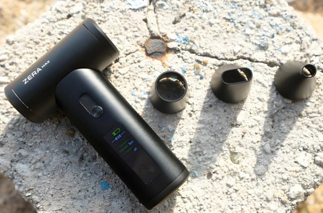 Устройство Zera Max выглядит крайне миниатюрным — но при этом совмещает функционал мощного вентилятора и пылесоса. Оно напоминает формой молоток и имеет габариты 35 x 80 x 123 миллиметра при весе всего 265 граммов.