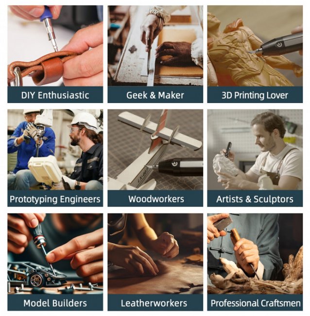 Резак может применяться широким кругом пользователей, от художников и скульпторов до специалистов по 3D-печати и создателей миниатюрных моделей. Устройство имеет три режима мощности, которые можно адаптировать к типу материала, а подсветка на светодиодах обеспечивает обзор рабочей зоны. Управление резаком интуитивно простое и понятное.