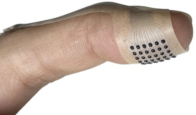 В Северо-Западном университете США разработали гибкое тактильное устройство VoxeLite, которое надевается на кончик пальца и позволяет ощущать текстуры разных предметов при контакте с сенсорным экраном. Прикосновение остается последним из основных человеческих чувств, не имеющих полноценного цифрового интерфейса, и новое устройство способно восполнить этот пробел.