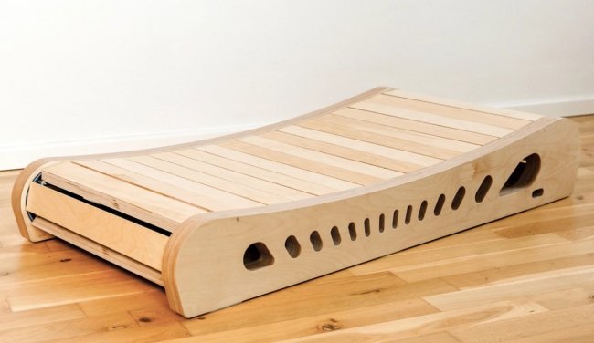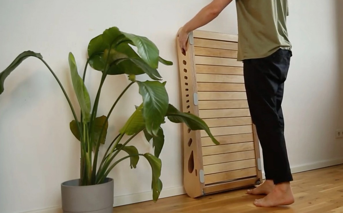 Ключевым преимуществом решения является его интуитивная простота – устройство естественно адаптируется к индивидуальному ритму движения и останавливается при необходимости концентрации или выполнения точных операций с компьютерной мышью. Прототип устройства был выполнен из цельного дерева, но тестовые испытания выявили чрезмерную жесткость поверхности. В серийной версии применены более упругие планки, обеспечивающие комфорт при длительном использовании и повышенную износостойкость.