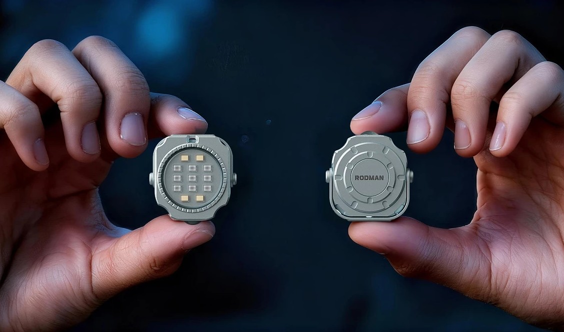 Прочный титановый корпус обладает водонепроницаемостью, соответствующей стандарту IP68, и высокой пылезащищенностью. Для стационарного использования предусмотрена выдвижная магнитная подставка, которую можно установить под углом 105 градусов и закрепить на любой металлической поверхности. Для удобного ношения на одежде понадобится небольшое отверстие под брелок, шнурок или карабин.