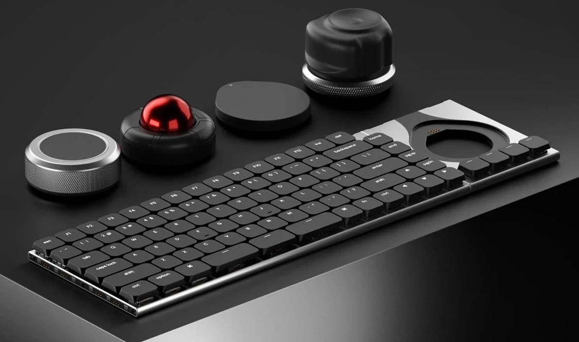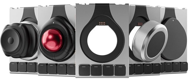 Клавиатура полностью программируема, имеет настраиваемую подсветку, поддерживает опрос с частотой 1000 Гц и совместима со всеми актуальными ОС. Но ключевой особенностью системы все же является возможность расширения за счет дополнительных модулей. Главным является док-станция с 4 программируемыми клавишами и специализированным круглым разъемом для дополнительных устройств ввода, которые могут эффективно заменить мышь в определенных задачах. К ней можно подключить один из четырех компонентов: