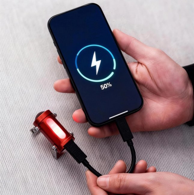 Штатная литиевая АКБ на 3250 мА⋅ч получает зарядку через USB-C. Ее запаса хватает на 180 минут работы в режиме дальнего света или на двадцать часов в режиме вспомогательной подсветки. Более того, этот аккумулятор может выступать в роли внешнего накопителя энергии — например, для подзарядки смартфона.