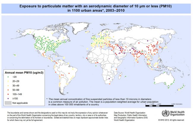 Карта городов загрязненного воздуха (данные ВОЗ)