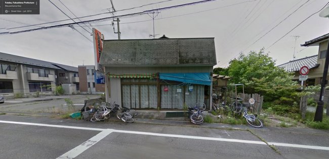 Снимки, сделанные в рамках программы Google Street View на пустых улицах поселка Okuma и города Futaba, вживую переносят нас в мир мертвых магазинов и домов, поросших травой дорог, неопрятных кровель, ржавых машин и велосипедов, которые до сих пор остаются там, где их бросили хозяева.