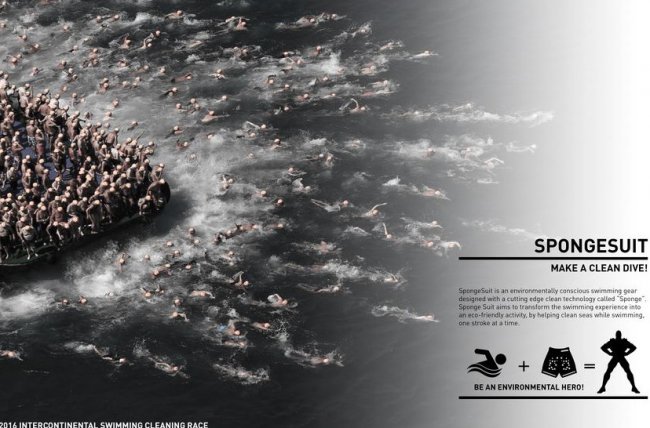 "SpongeSuit" (рус. «костюм-губка») представляет собой напечатанный на 3D-принтере каркас с вкладками из специального эластомера, сплетенного особым образом, который по своей форме и структуре напоминает высокотехнологичную губку. Пористый материал, который служит основным компонентом «экокупальника», ученые получают при соответствующем разогреве сахарозы.