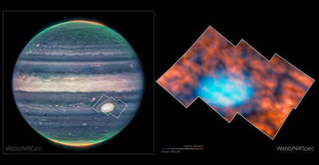 Телескоп Джеймс Уэбб идеально подходит для этой задачи, так как он оснащен наиболее современными сенсорными системами, такими как спектрограф ближнего инфракрасного диапазона. С Земли верхняя часть атмосферы Юпитера выглядит пустой, все основные события происходят в бурлящей нижней части. Однако Джеймс Уэбб способен уловить даже самые слабые источники света, поэтому через него удалось разглядеть множество аномалий над Красным пятном.